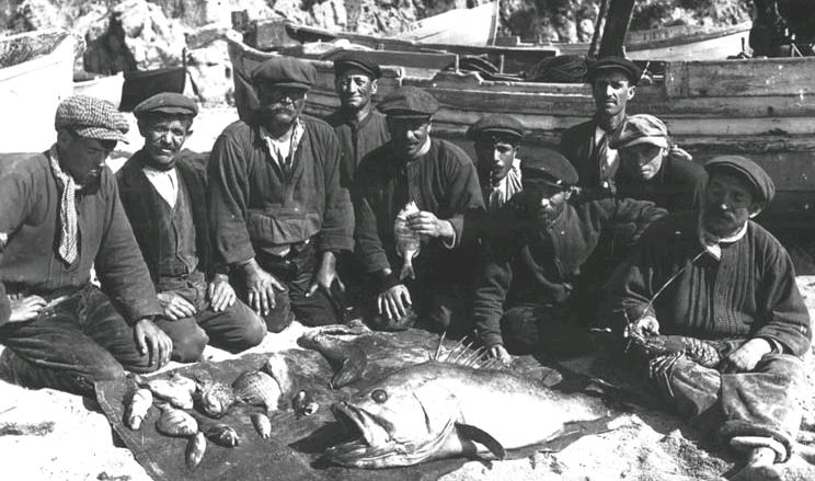 Aquesta foto l'hem vista infinitat de vegades, reproduïda de mil maneres, simbolitzant el passat, no gaire llunyà de la nostra vila. Però aquests pescadors que mostren el fruit de la seva feina davant de l'ull fotogràfic de l'Emili Martínez posseeixen nom.